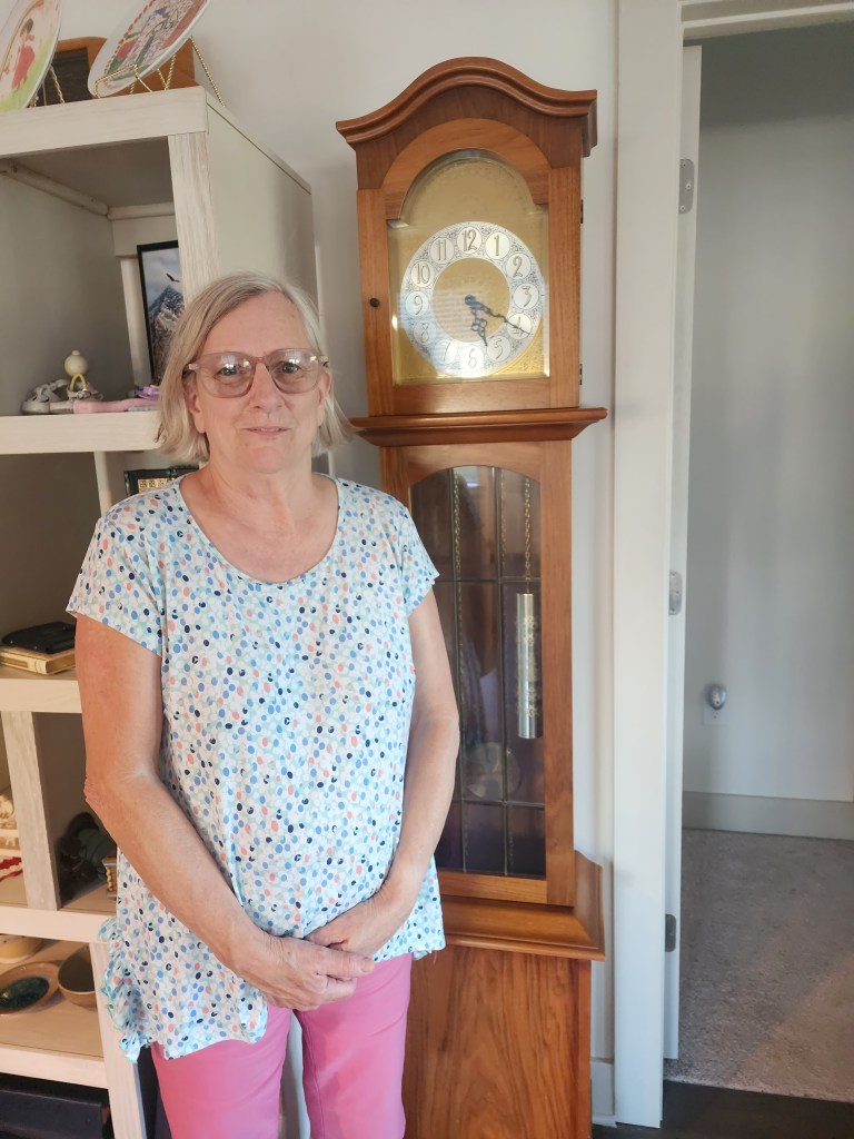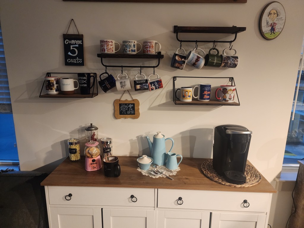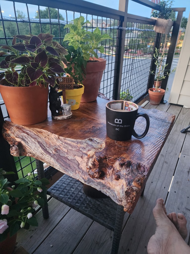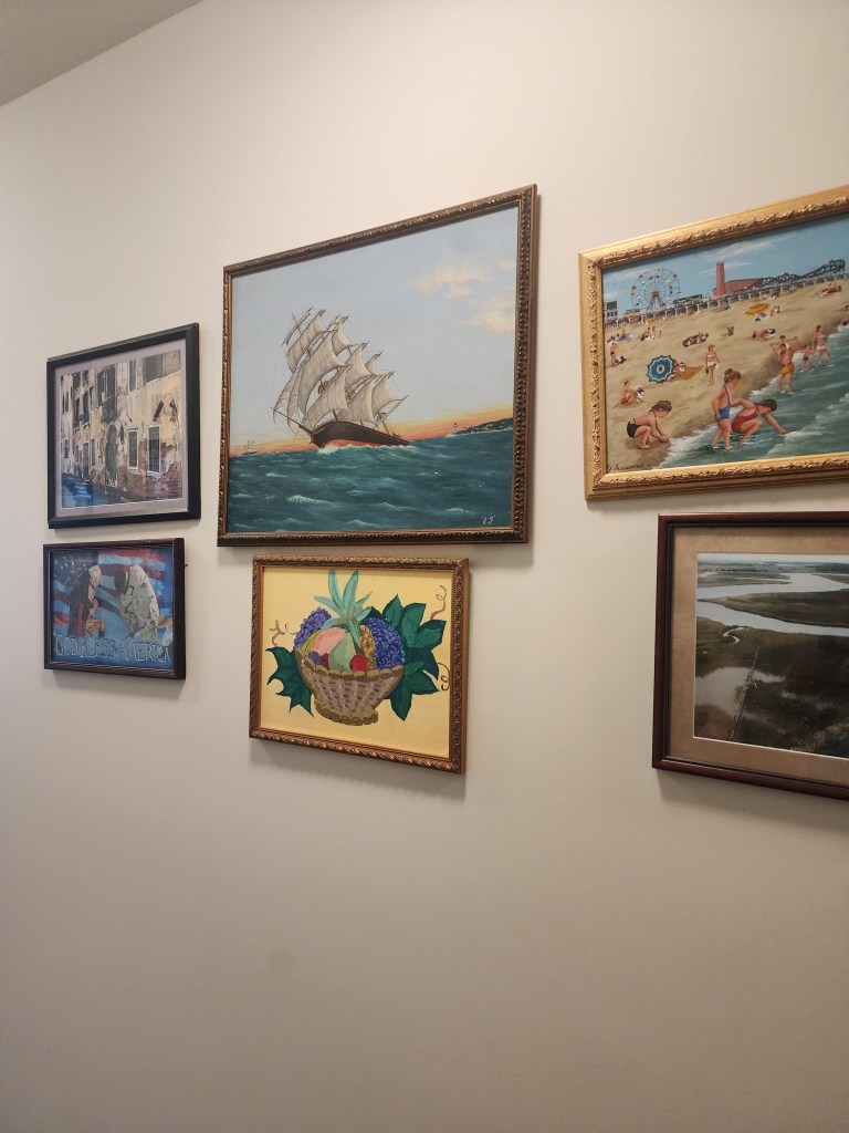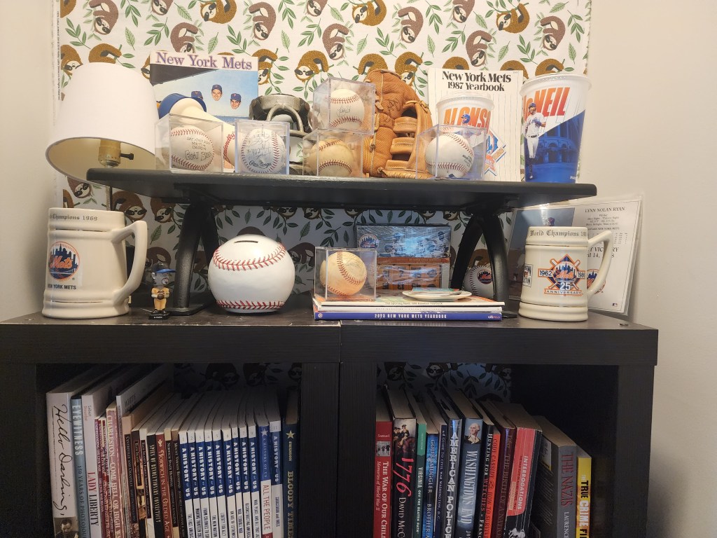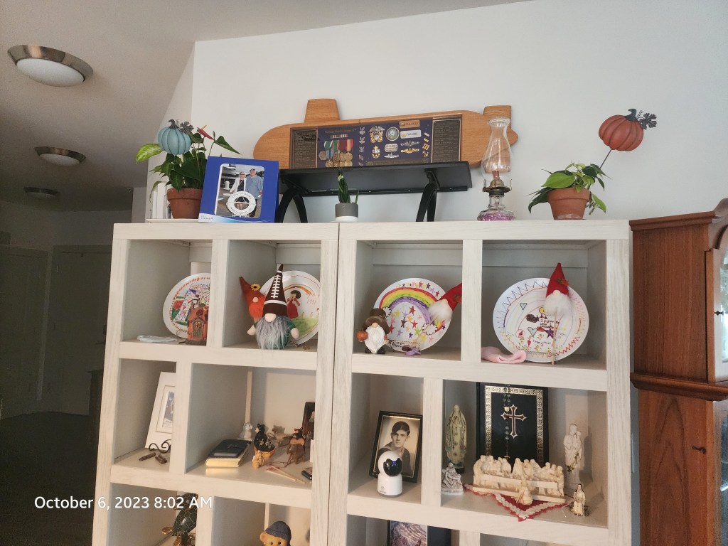 So comfy chair in our apartment complex The beginning of our balcony tables. Recreation room. Our puzzle floor. It lasted 2 months. You still have to check the disks out. Our rec room has a couple of good toys. Diane looooves balconies. Time to teach Diane chess. Our coffee bar. Part of our Mets corner. We refurbished an old table and chairs. The roof lounge of our building. 3 of Diane’s paintings. Diane found a grandfather clock at an Estate sale. She has always wanted one. Part of my bear collection. Bobby has them now. Diane made our coffee table. One of our Mets walls. Our wall. My old bear collection.