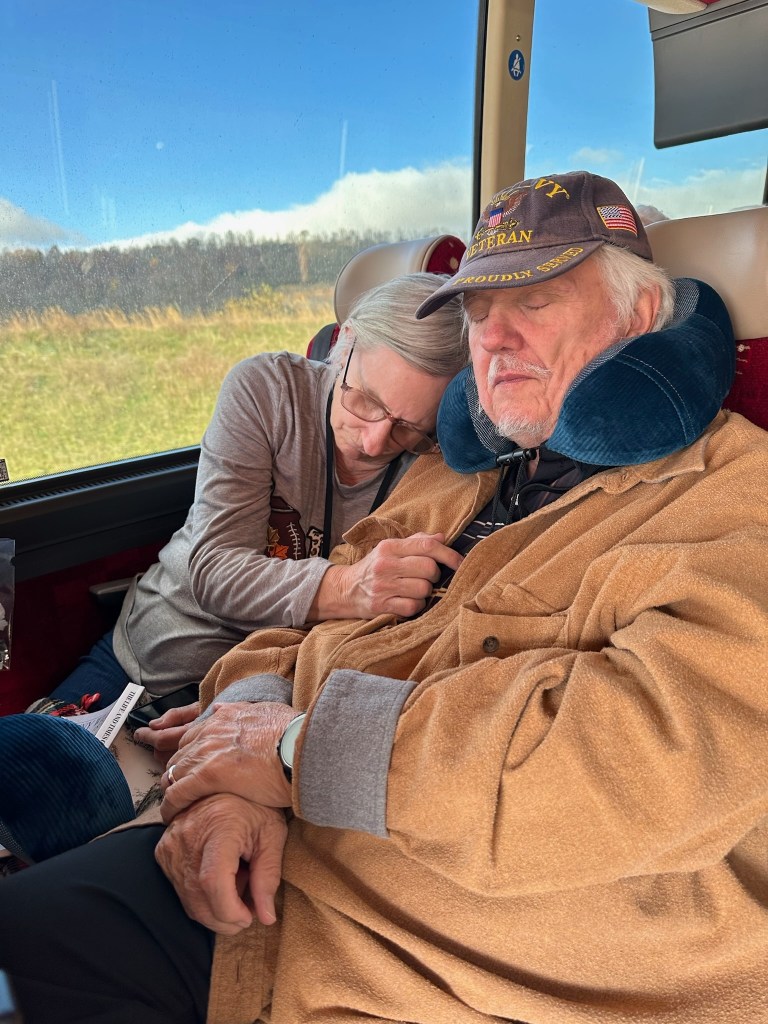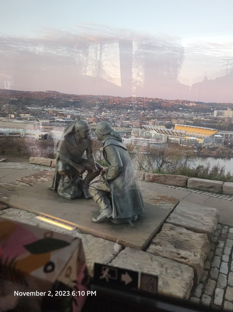 Tour Director JennyJohn Brown our driverYou did what? Get me out of here before I turn into a snow woman! I’ll stay thanksCuddles in rural America Can we say 23 degrees? Mary and JoAnn from Charleston, SC Bald Eagle searching Duquesne Incline Acrisure Stadium (Where the Pittsburgh Steelers play) John faces Pittsburgh traffic New River GorgeThe End