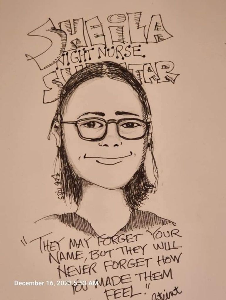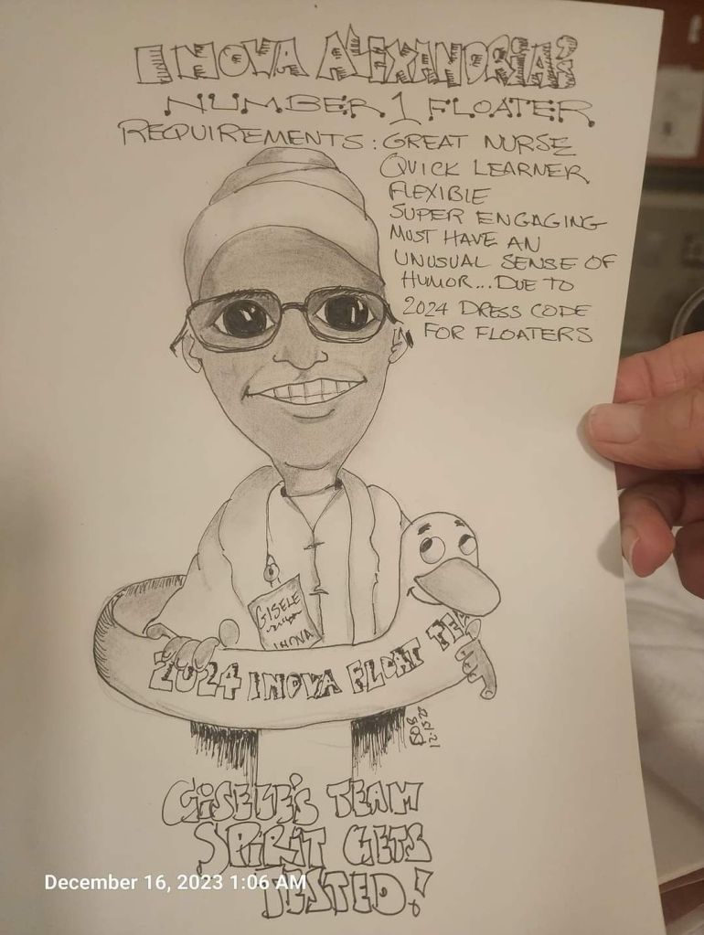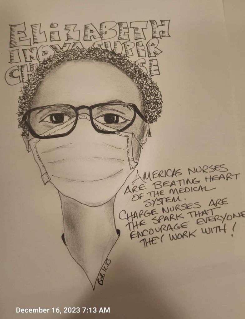 When I was in the hospital recently, I was blessed to have nurses dropping in around the clock asking me to draw them. It really was fun.