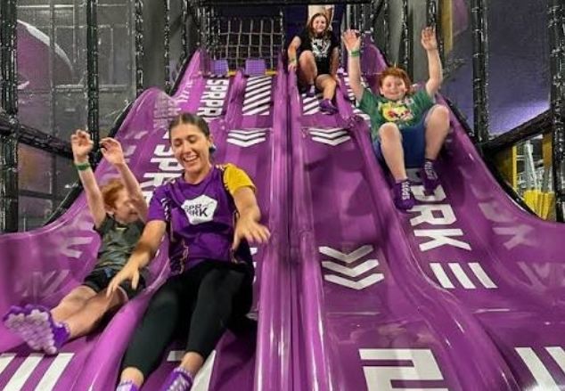 Gaia, Lisa and Hilal to the trampoline bounce house in High Point NC